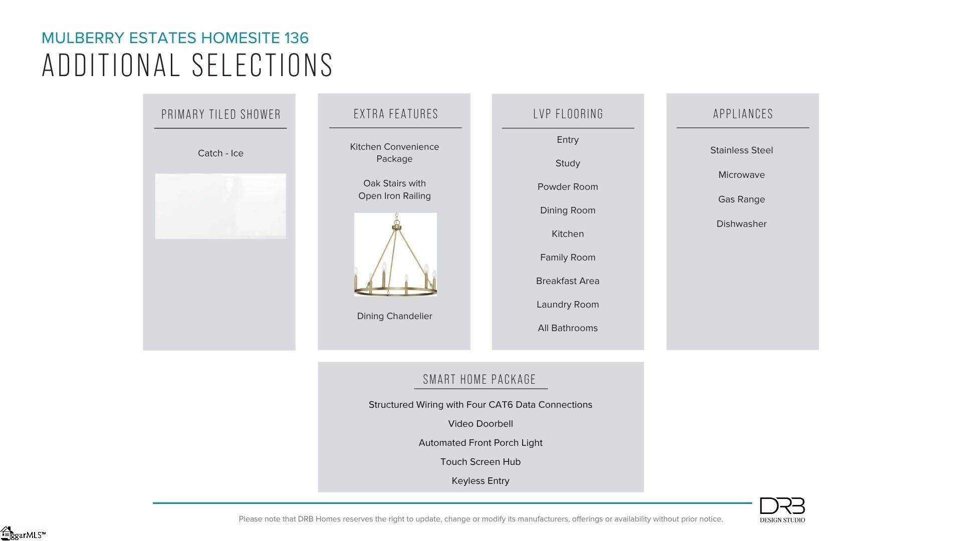 Welcome to Mulberry Estates! The only new single family community in Simpsonville with future access to the Swamp Rabbit Trail. Upon entering the Drayton, you are greeted with a welcoming foyer that shows how open and bright the home is. Adjacent to the entry is a dedicated study with French doors that would make the perfect home office! The formal dining room with coffered ceilings leads into the spacious and modern kitchen featuring beautiful soft white cabinetry, light Quartz countertops, tiled backsplash, under cabinet lighting, double door pantry, center island, farmhouse sink and upgraded stainless steel gas appliances. The extended breakfast nook leads out to the covered back porch which overlooks your backyard making it a perfect place for summer cookouts. The airy family room features high ceilings and tall windows giving the room lots of natural light along with a cozy gas fireplace. Up the Oak staircase you come to your open loft space which is great for an extra living area. The spacious Primary Suite features trey ceilings, double sinks, generous walk in closet, and Roman tiled shower with two showerheads, seat and frameless glass door. Two additional bedrooms, both with walk in closets, full bath, and convenient upper-level laundry room complete the second floor. Smart home technology, energy-efficient design, and a dedicated local warranty team ensure long-term comfort and convenience. Centrally located between two of Greenville County's fastest growing cities. Mulberry Estates features premier craftsman style floorplans including first or second level primary suites, James Hardie ColorPlus siding, open concept living and designs for all lifestyles. Desirable future in-community access to the Swamp Rabbit Trail. Under 5 minutes from I-385 and Harrison Bridge Rd. Surrounded by top-rated schools including the new Fountain Inn High School. Immerse yourself in entertainment options with the Heritage Park Amphitheater being just around the corner. Explore charming downtown Fountain Inn with the Farmer's Market, Shopping, and Dining only five minutes from your doorstep. Plus, convenient retail nearby with Target, Publix, and more off of Fairview Road. This home is almost complete so come by today for your personal tour and make Mulberry Estates your new home! See Sales Agent for additional pricing information.